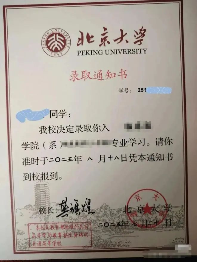 8月6日,有人发文指出,北京大学录取通知书中两处表述存在语句问题,引发关注。